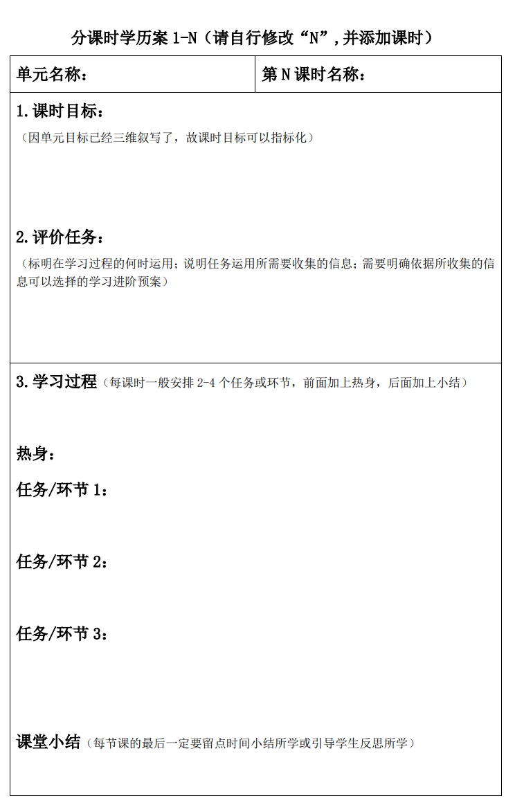 【附单元学历案参考格式】