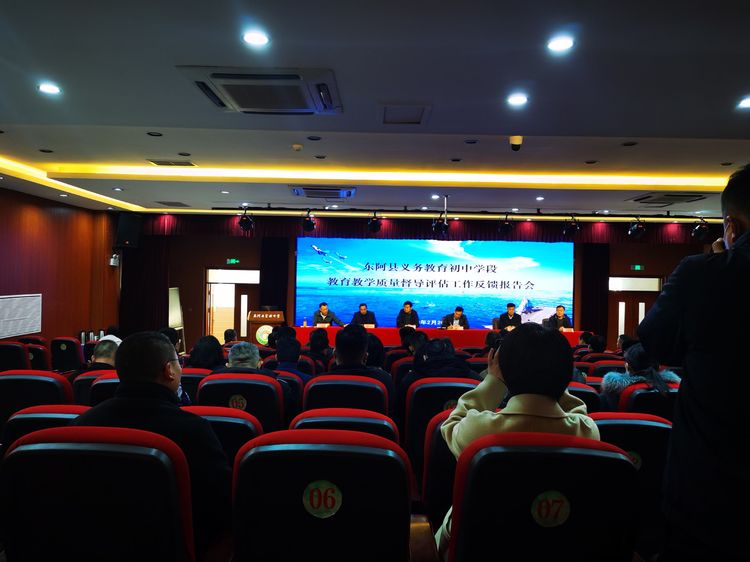 东阿县初中学段中层以上干部、学校校长、教体局各科室主要负责人、局班子成员共80余人参加了反馈会议。(张本祥)
