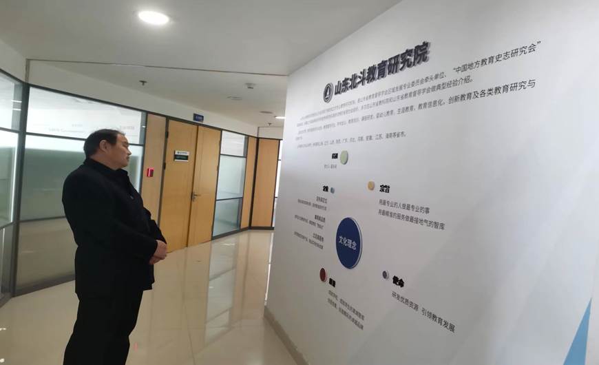 在山东北斗教育研究院党建活动室,贾玉德院长与临沂市教育局有关部门负责人,就“中国式教育现代化”的重难点问题,尤其是新时代教育评价体系中的高中办学质量评价进行了切磋研讨。