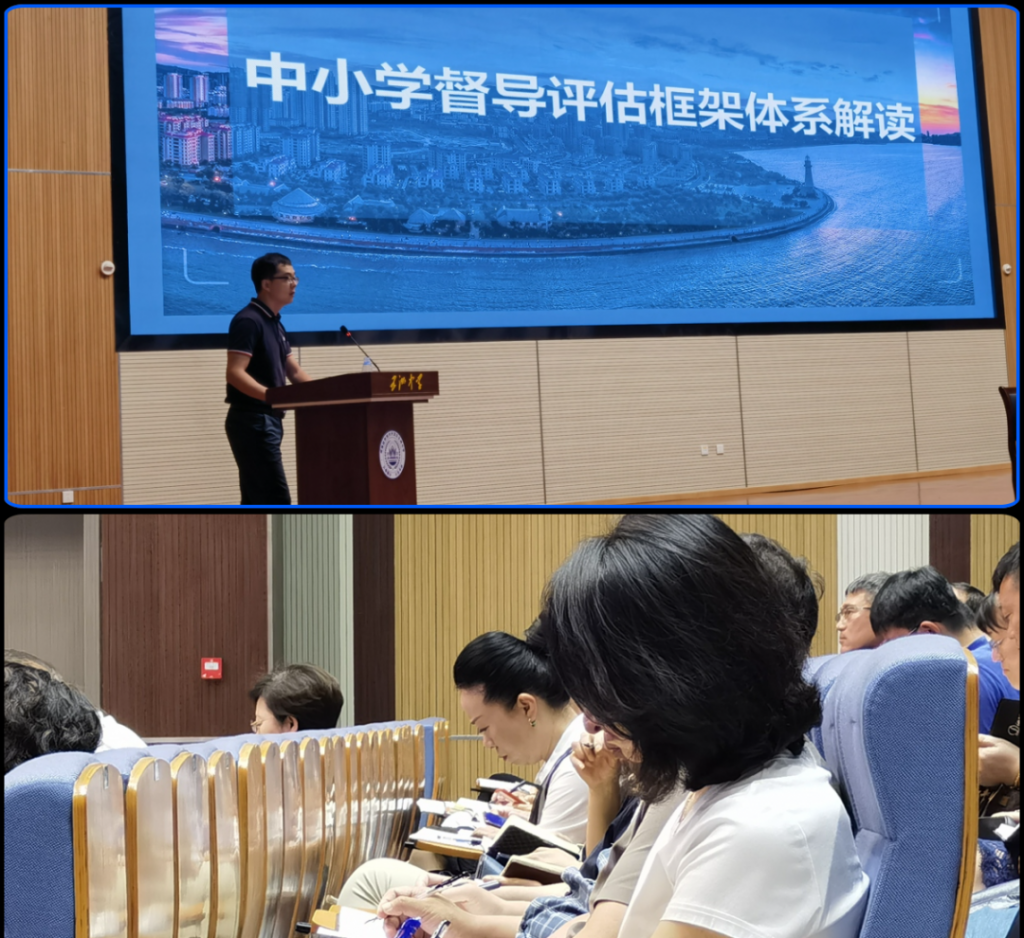 督导室对新学年义务教育督导评估框架体系进行了解读,强调要在守住底线的基础上,更加突出学校的重点工作,更加激发学校的创新活力,更加聚焦学生的成长发展。